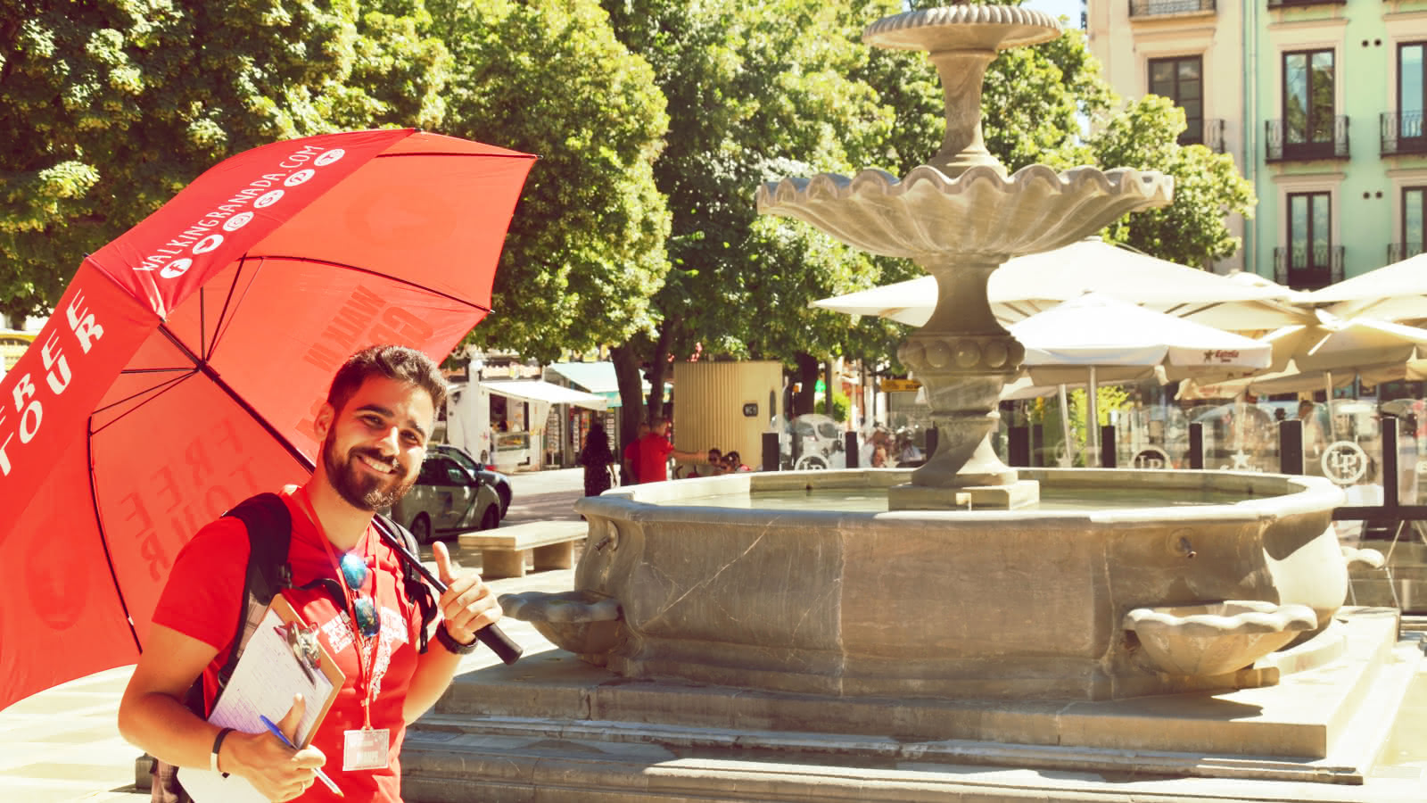 Meet your guide next to the fountain at Plaza Nueva, look out for the red umbrella!