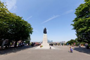 Next to the Observatory there is a stunning view of the city skyline and behind that a statue of General James Wolfe, if you look closely you can clearly see large bullet holes apparently made by a German fighter plane during World War II.